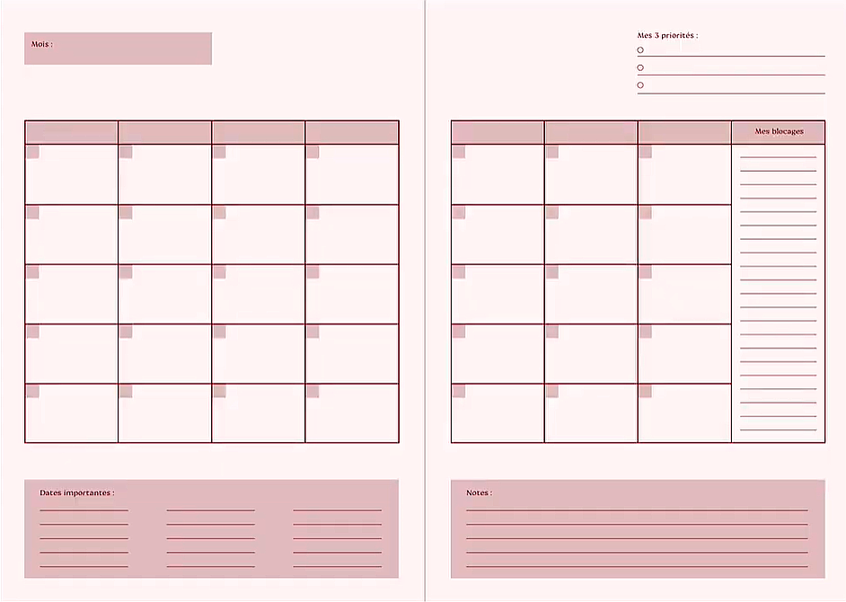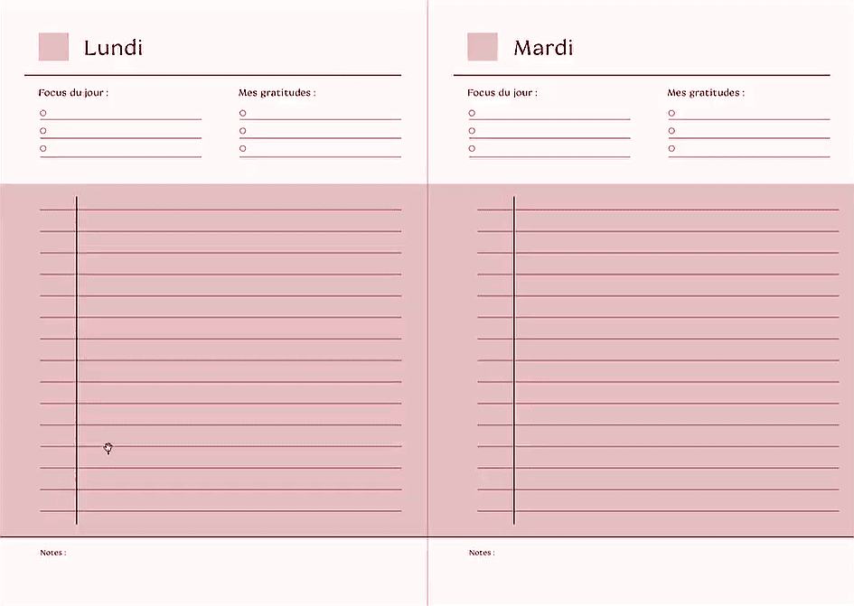 • Des espaces d’écriture pour t’observer, planifier, et célébrer